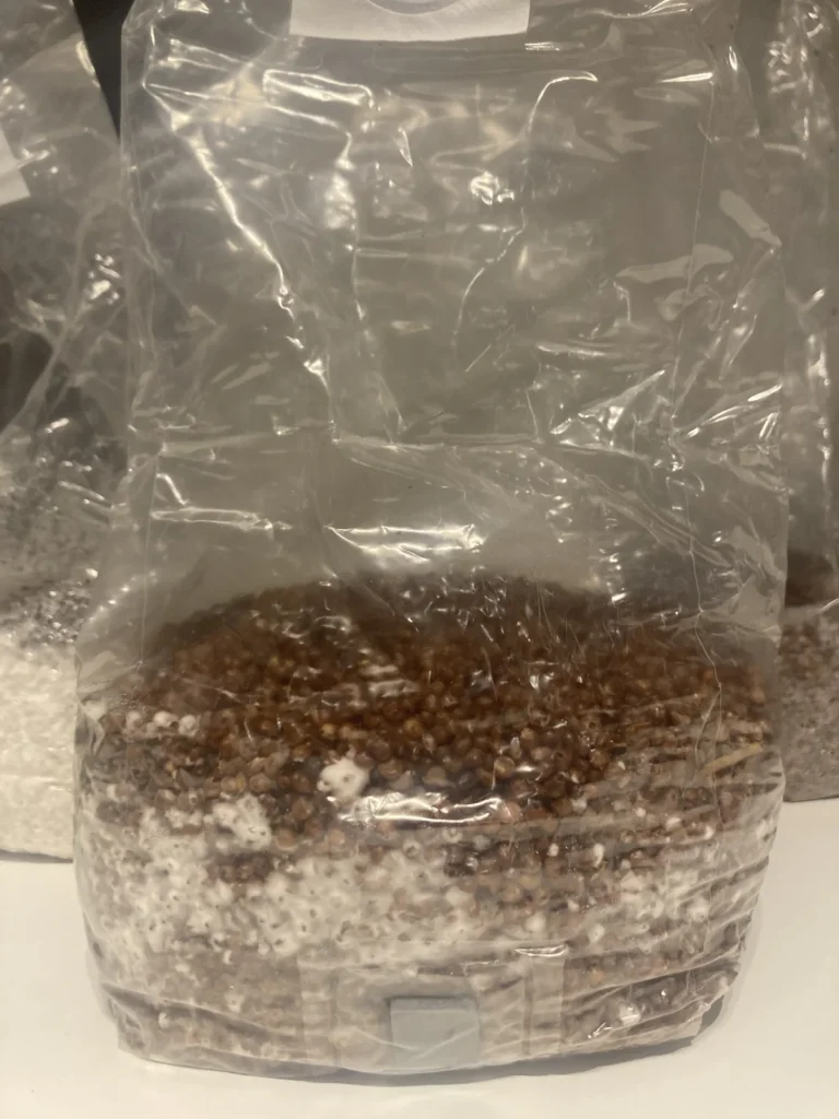 Gdy grainspawn będzie skolonizowany w około 50% wstrząśnij workiem żeby rozbić skoncentrowaną grzybnię i przyspieszyć kolonizację całego bloku. Golden Teacher kolonizuje równomiernie i agresywnie – przy dobrym grain spawnie worek powinien być w pełni biały po 2-4 tygodniach.